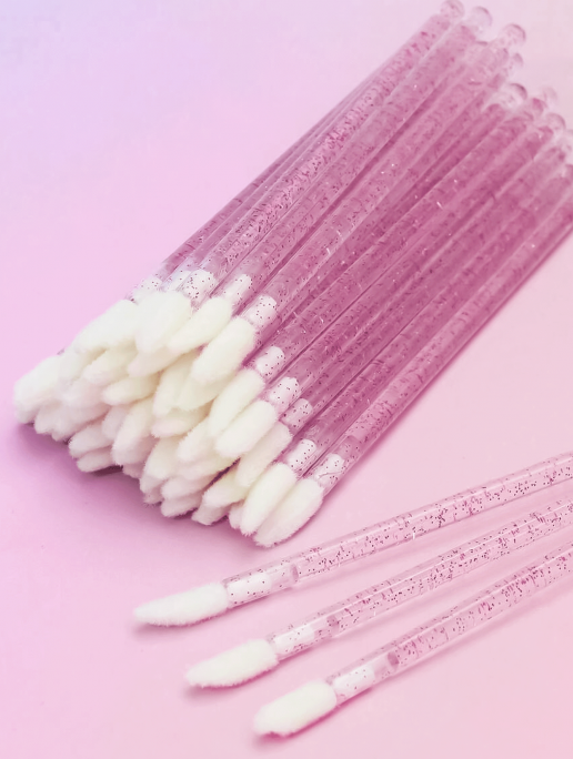 Aplikatory Welurowe do Ust i Rzęs Jednorazowe – 50 szt Brokatowe Malinowe