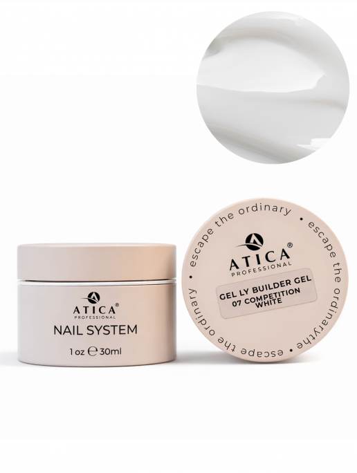 ATICA GEL-LY Competition White to profesjonalny żel budujący o gęstej, piankowo-żelowej konsystencji, stworzony do modelowania, wzmacniania oraz przedłużania paznokci. Intensywnie biały odcień Competition White zapewnia idealne krycie i czysty, śnieżnobiały kolor – doskonały do stylizacji typu french konstrukcyjny, salon french oraz zdobień wymagających perfekcyjnej bieli.