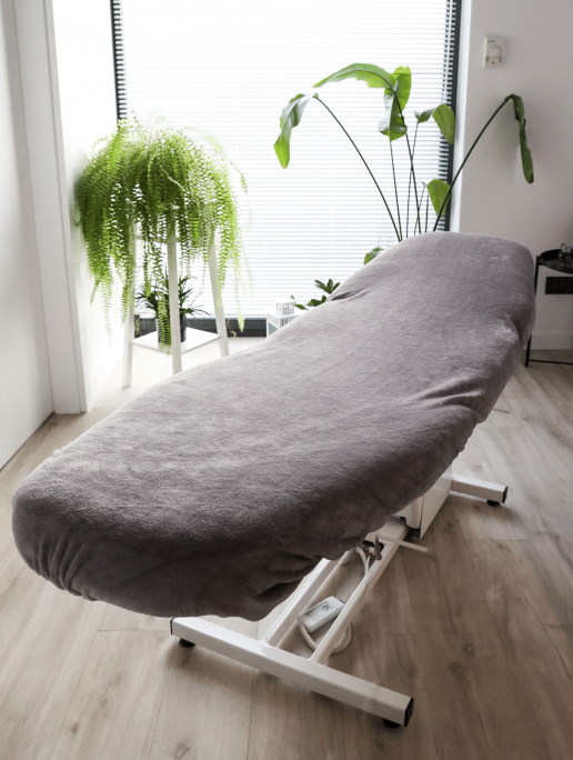 Dzięki wszytej na całym obwodzie gumce, pokrowiec doskonale przylega do leżanki i nie zsuwa się podczas zabiegów, zapewniając wygodę użytkowania i estetyczny wygląd gabinetu.
