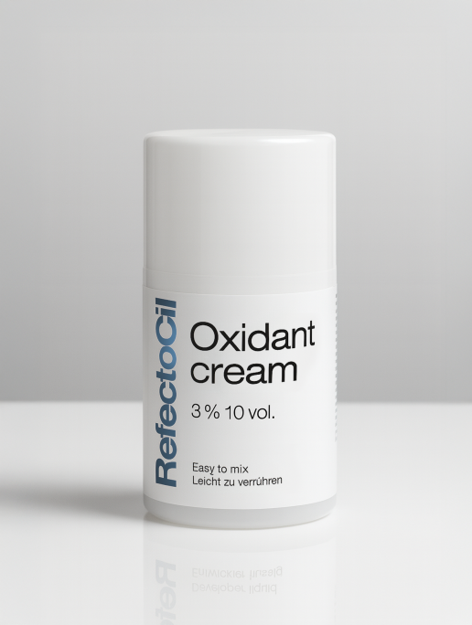 RefectoCil Oxidant 3% Cream to profesjonalny stabilizator w kremowej formule, stworzony do użycia z farbami RefectoCil. Dzięki swojej gęstszej konsystencji łatwo łączy się z henną, tworząc jednolitą i precyzyjną mieszankę. Zapewnia trwałe, intensywne efekty koloryzacji brwi i rzęs, gwarantując równomierny kolor oraz bezproblemową aplikację.