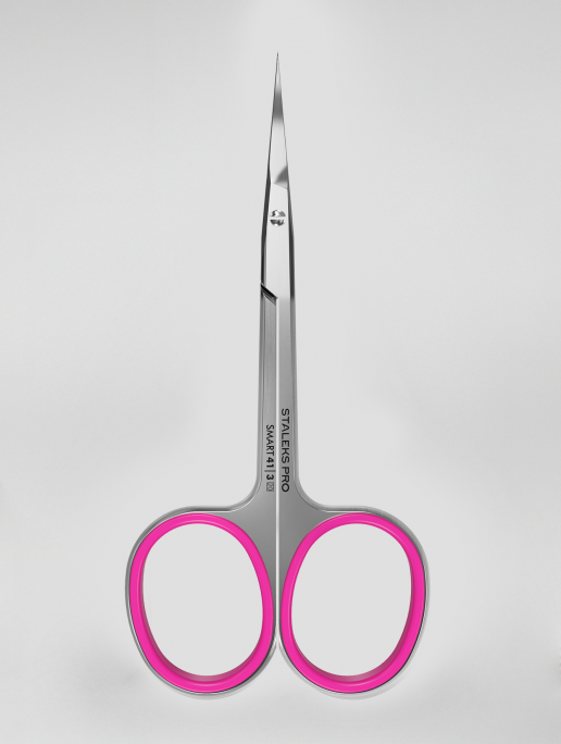 SMART 41 TYPE 3 to nożyczki do skórek z unikalnie wyprofilowanym haczykiem na końcówkach (opatentowane rozwiązanie Staleks). Wąskie, stożkowe ostrza z ręcznym ostrzeniem prowadzą cięcie dokładnie wzdłuż zatok i wałów okołopaznokciowych, ograniczając ryzyko ukłuć. Ergonomiczne, wydłużone uchwyty oraz miękkie silikonowe wkładki dbają o komfort nawet przy dłuższej pracy.