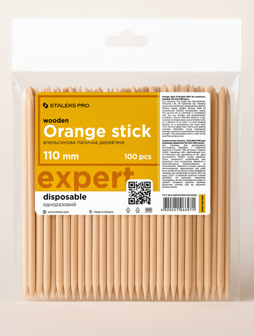 Pomarańczowe patyczki Staleks Pro EXPERT to niezbędny element w profesjonalnym manicure i pedicure. Wykonane z naturalnego drewna pomarańczowego, są gładkie, wytrzymałe i przyjemne w użyciu. Dwustronna konstrukcja – szpic i łopatka – zapewnia maksymalną funkcjonalność: od odsuwania skórek po oczyszczanie płytki paznokcia.