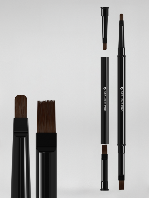 Dwie role — jeden pędzelek. Dwustronny EXPERT pozwala błyskawicznie przełączać się między końcówkami: wybierasz, która strona pracuje teraz. Włosie jest zawsze bezpiecznie osłonięte, a na stanowisku — minimum narzędzi. Wystarczy zdjąć nasadkę i wsunąć pędzelek do środka, aby ukryć i ochronić włosie.